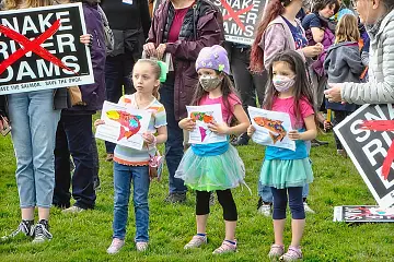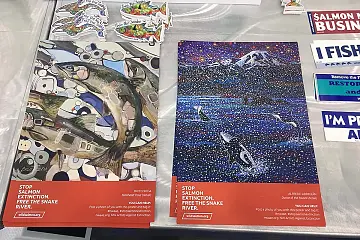 Olympia (WA) rally for salmon, orcas and the Snake River features NWAAE materials – including artwork stencils to inspire children of all ages to ‘Speak4Salmon’ in creative ways.