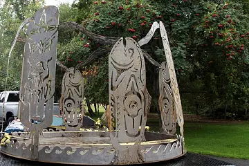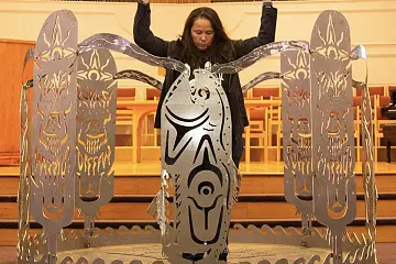 A. Cyaltsa Finkbonner is a member of the Lummi Nation, or Lhaq’temish (people of the sea). She is a metal worker and self-described “traditionally untraditional artist.” This past year she collaborated with master carver Jewell James of the Lummi House of Tears Carvers to create a beautiful 8’ wide x 4.5’ high, All Our Relations steel sculpture, designed and welded by Cyaltsa. This stunning art piece was central to the…