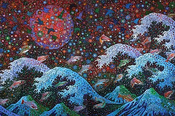 I had an opportunity to talk with NWAAE artist Gabriel Newton, after the Tribute to the Orca event at the Seattle Aquarium where 17 paintings from his SUPER POD collection were exhibited for the event. I caught up with him before he headed out for 6 days on the Middle Fork of the Salmon River, in the headwaters of the Snake River.