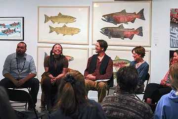 “Happiness is a room full of people celebrating salmon through visual art, poetry, and activism. Big thanks to…Save Our Wild Salmon’s Northwest Artists Against Extinction, and to Holly J. Hughes of Empty Bowl Press, Washington State Poet Laureate Rena Priest, and the Kittredge Gallery, University of Puget Sound. [At the closing] reception for Honor: People and Salmon proves once again that salmon bring people together. It's The Salmon Way.” --Amy Gulick, photographer, author,…